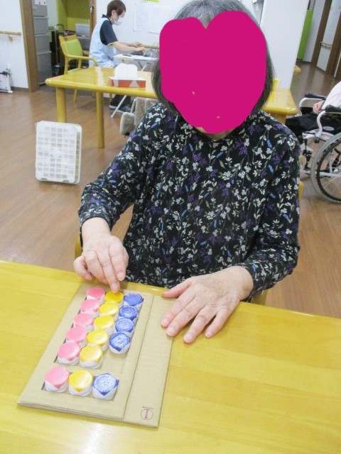 楽しみながら色を並べて合わせています。 出来たわ! と大喜びされていました(*^_^*) 満足そうでした!!