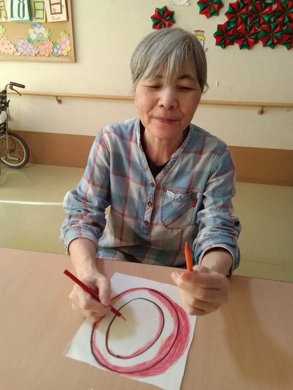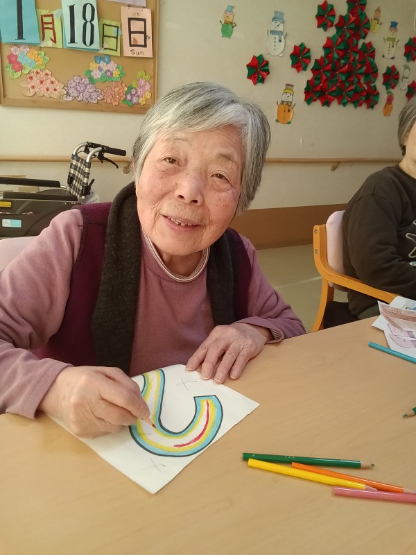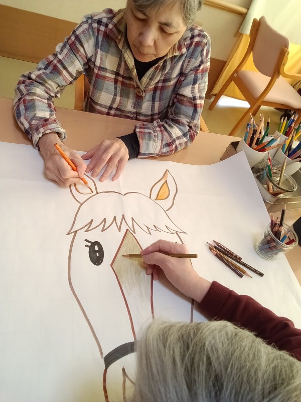 ぬり絵が大好きで日々ぬり絵を楽しんでおられる利用者様の協力で