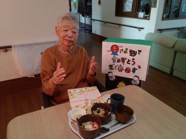 お正月のお食事ということで、おせち料理を召し上がっていただきました。