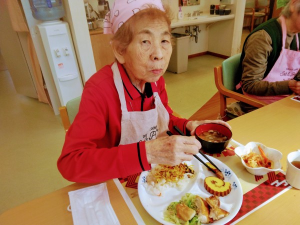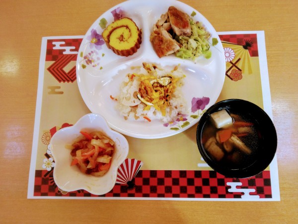 新しい年を迎え、デイサロンかたくりの里の昼食もスペシャルな「お祝い膳」でした♪