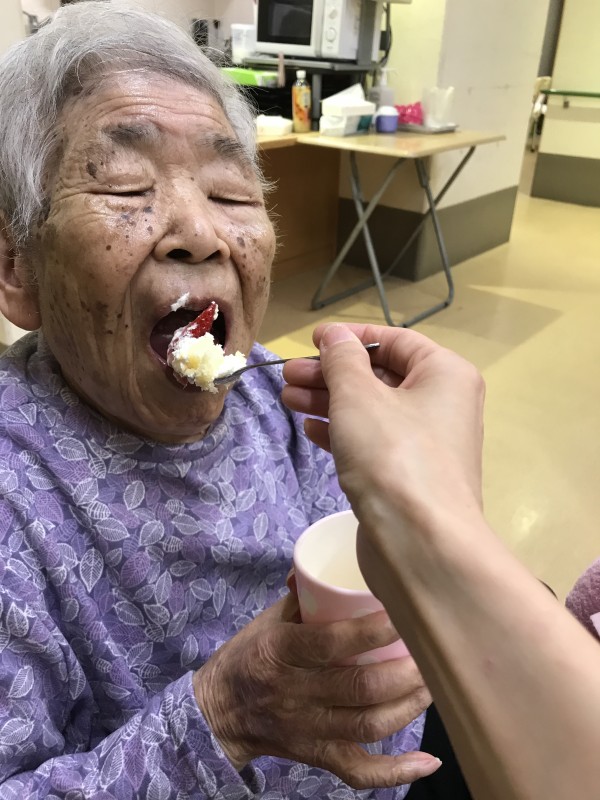 M様の100歳のお誕生日をお祝いしたいとボランティアさんが2人来てくださいました