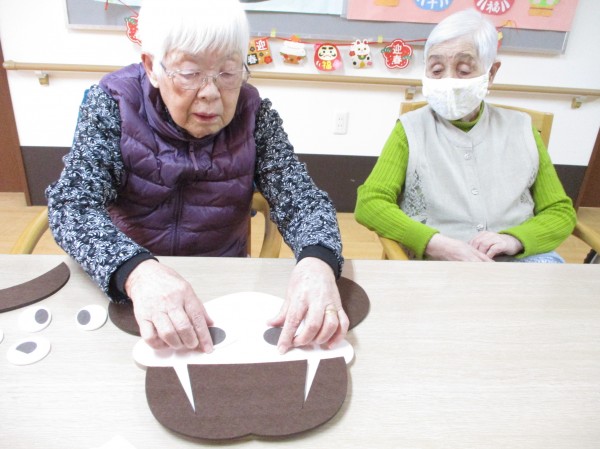 お正月レク(*'ω'*)♪1階 福笑い・おみくじ編♪