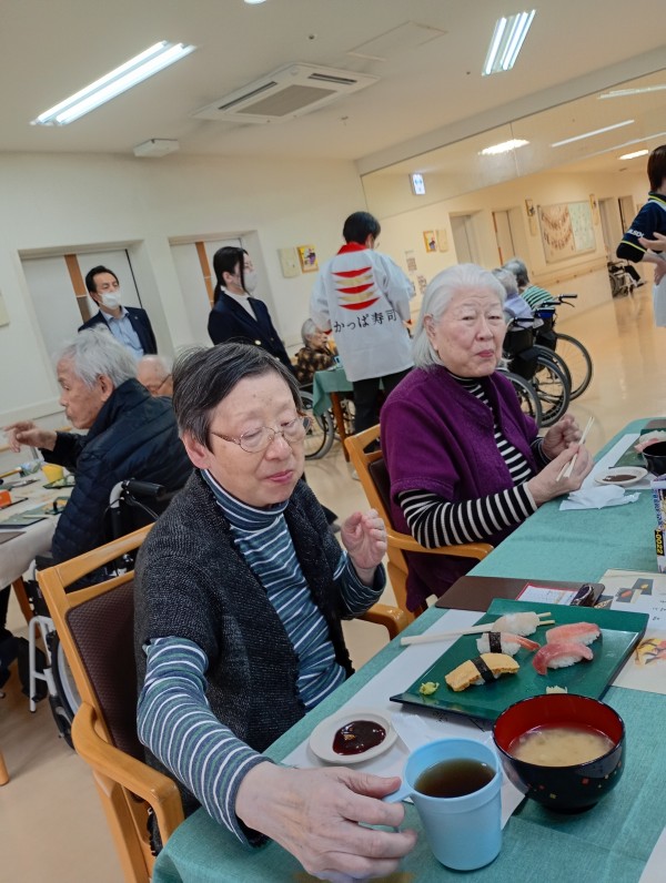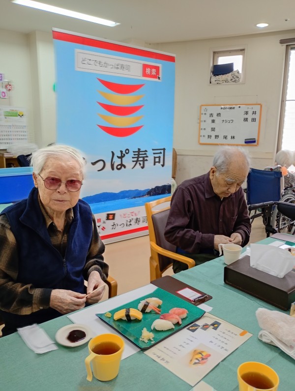 うちのご入居者様達御待望の寿司レクじゃー(; ・`д・´)