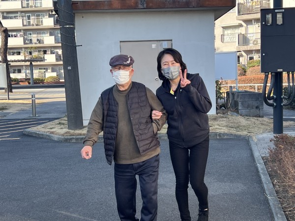 スタッフとお話をしながら歩いて楽しそうに