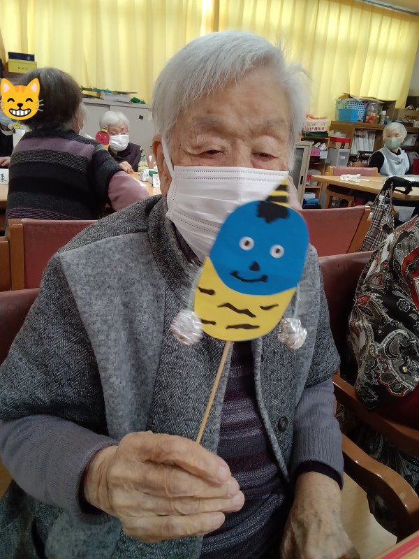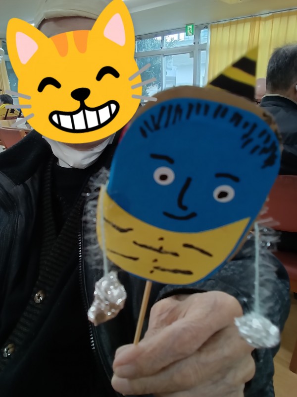 来月の節分にちなんで、「鬼のでんでん太鼓」を作りました(^O^)/