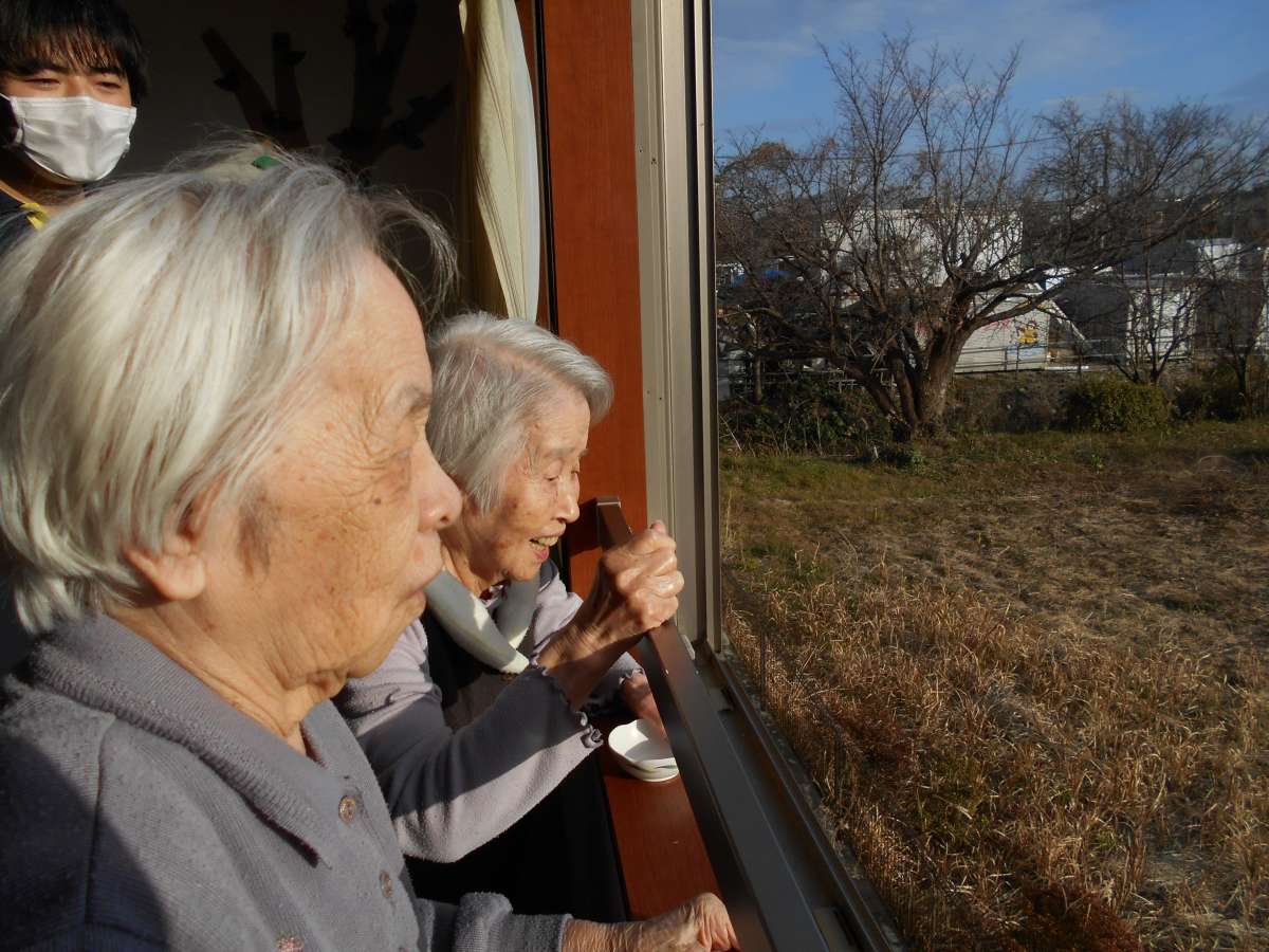 おやつの後は、1Fのご利用者様は玄関から、2Fのご利用者様は窓際から