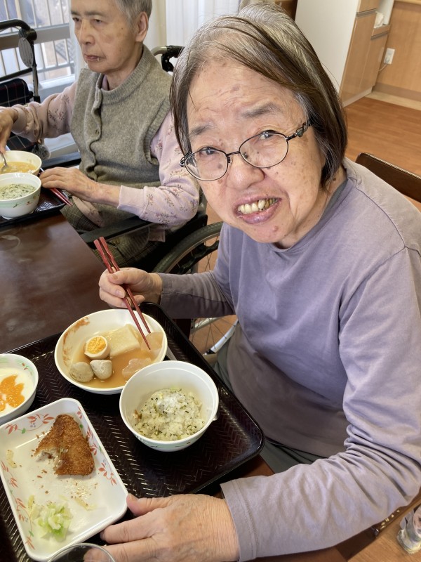昼食に、暖かいおでんでした。