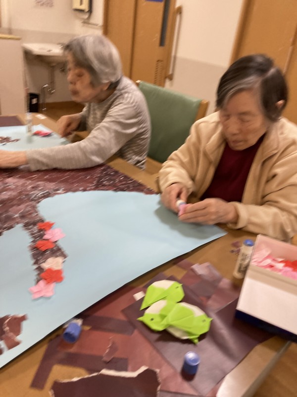 木が完成したら折紙で折った梅とウグイスを貼って完成です!