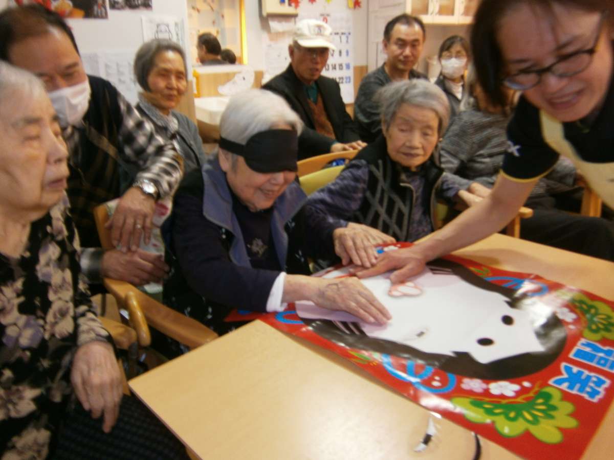 その後一人ずつ福笑いをし、節分に関する絵本の読み聞かせをしました。