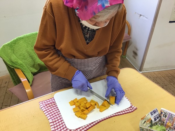最初はカボチャを細かく切っていきましょう♪