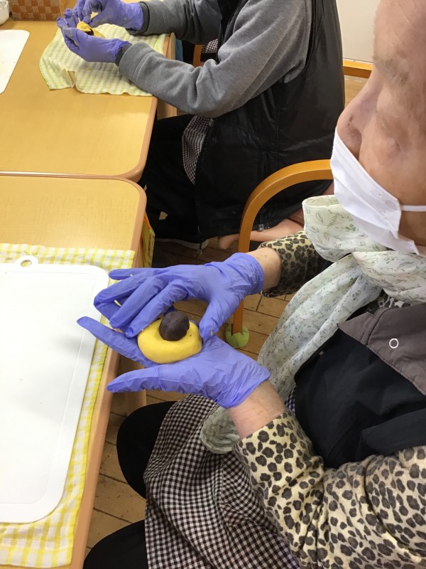 そして、、、カボチャの生地でアンコを包みましょう(^_-)-☆