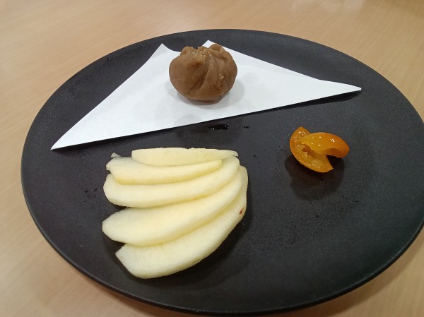 職員が一つ一つ茶巾に絞って提供させていただきました。