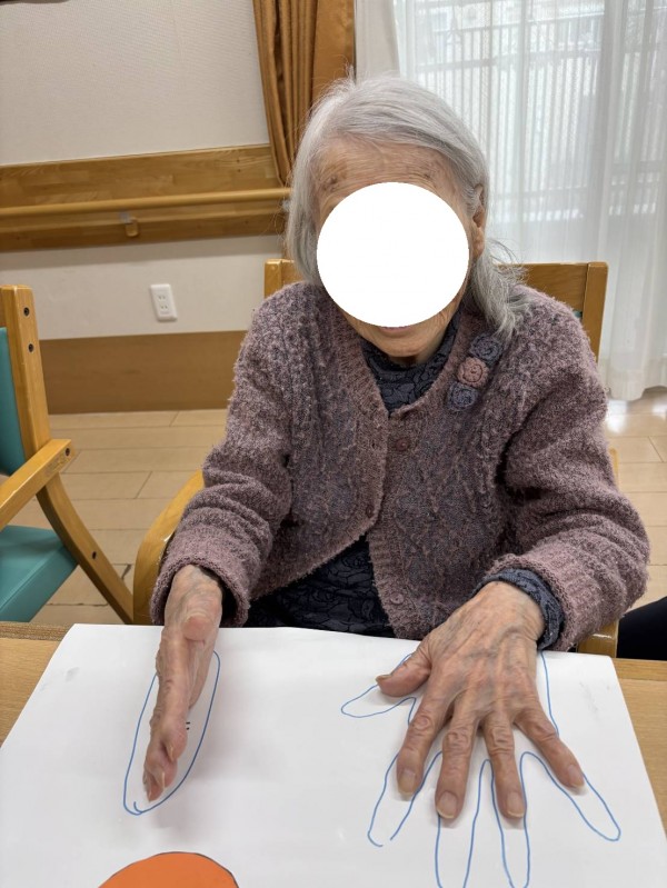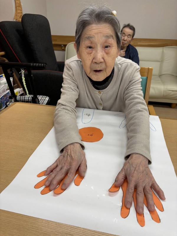 みんなの家・川越寺尾です☆ブログをご覧いただきありがとうございます!ぺったんこの手形を使ったレクリエーションを行いました!