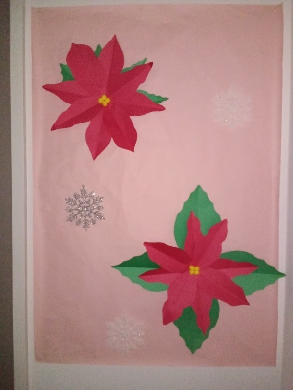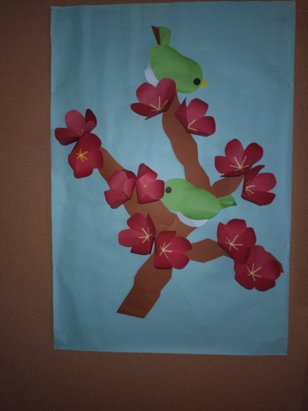 風が冷たく外気浴も出来ないので壁の飾りで季節を感じて頂いてます。