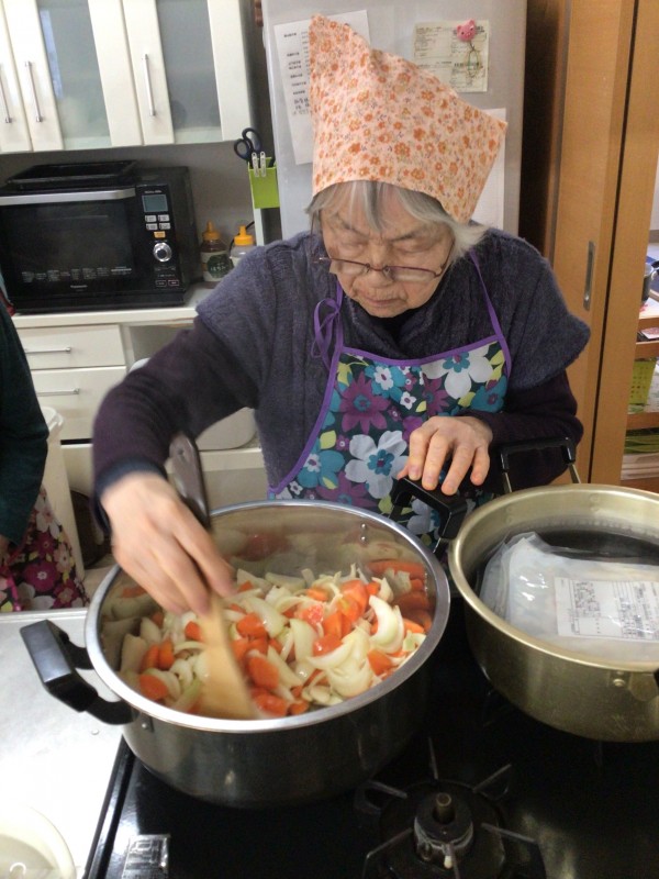 タマネギは皮を剥く所からお手伝いをお願いしまして…!!