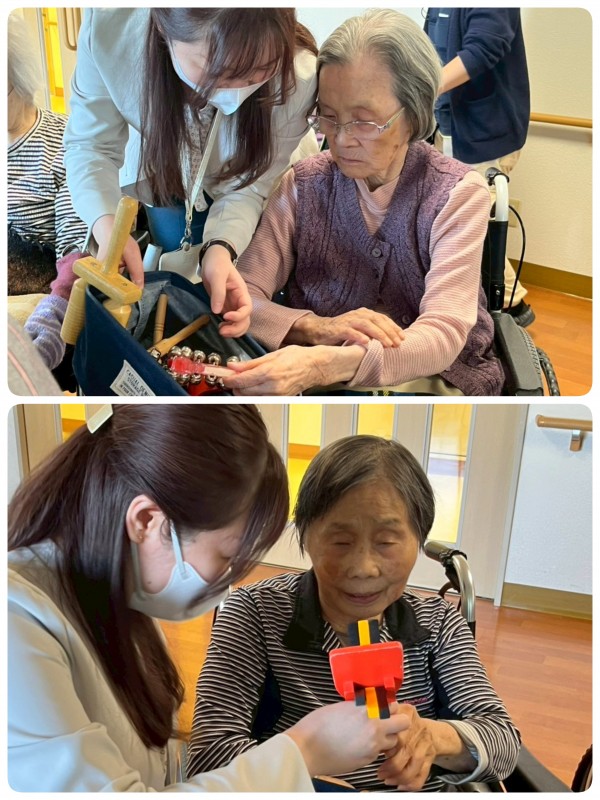 音楽療法と介護を学ばれたミュージックファシリテーターが来訪され、皆様をグイグイ惹きつけます!