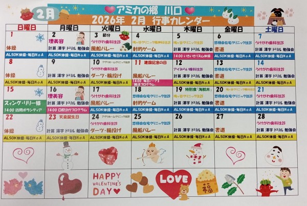 2月の行事カレンダーをお届けします(^▽^)/