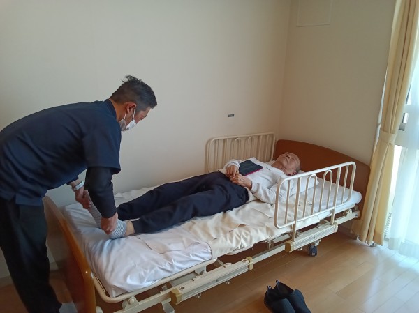 I様のプログラムでは、マッサージに加えて硬くなった関節の可動域を広げたり、お体の変形を予防したりする「変形徒手矯正術」も行われています。