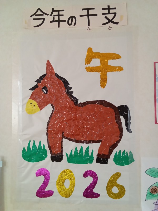 今回は今年の干支である午をちぎり絵で作りました!