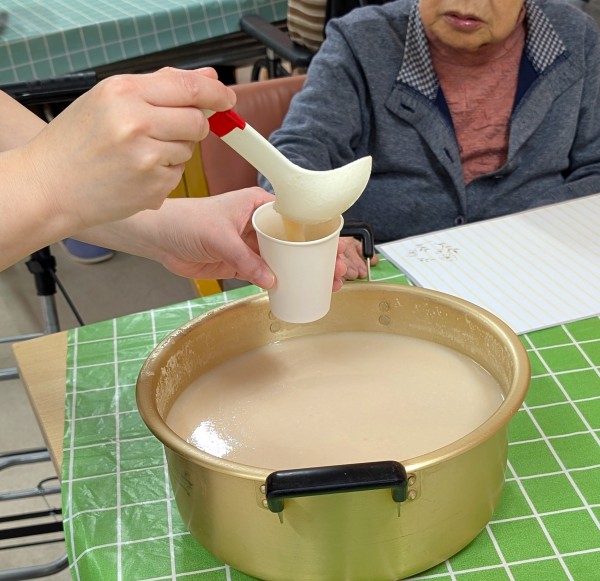 今日のおやつはあったか~いおでん!とあま~い甘酒をご用意いたしました( *´艸`)
