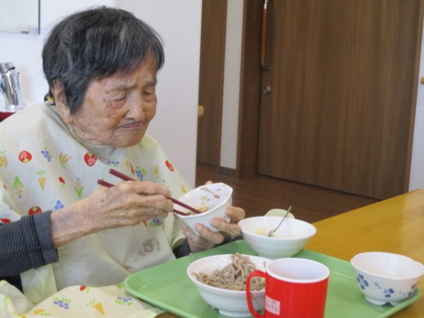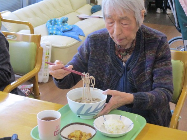昼食のメニュー:たぬきそば・おにぎり????・煮物です!! おそば! 珍しいわね? と仰られておりました。