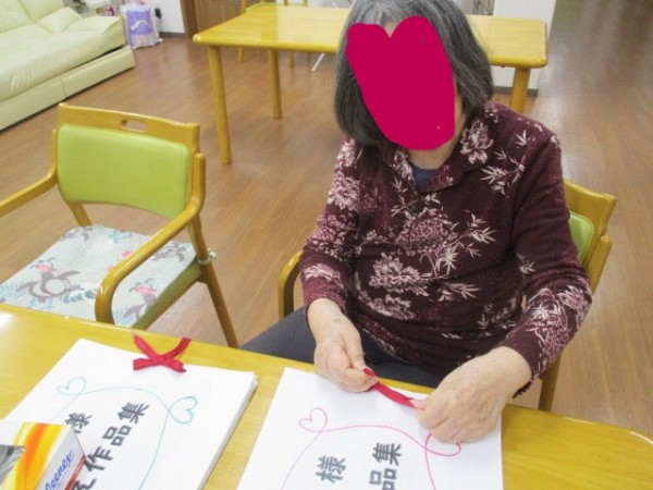 塗り絵の作品を閉じて下さっています( ^ω^)・・・ たくさんの塗り絵ができたかな?? 嬉しそうでした。