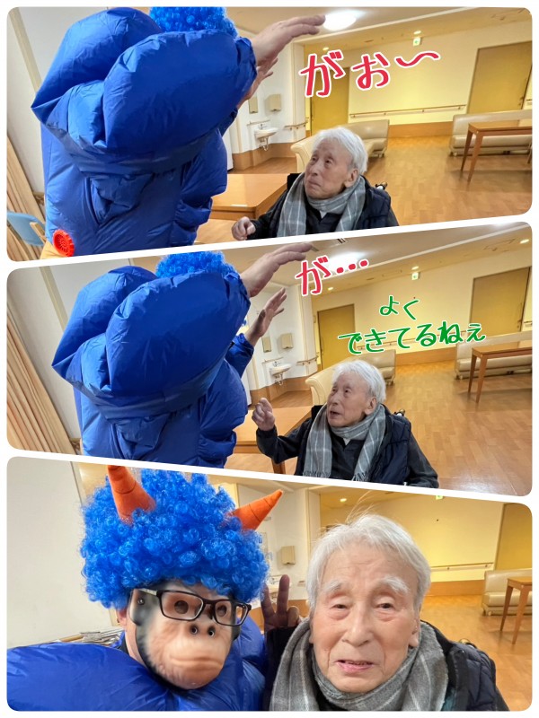 ご入居者様方に楽しんでいただきたい!と毎年趣向を凝らした鬼に変身して盛り上げてくれます。