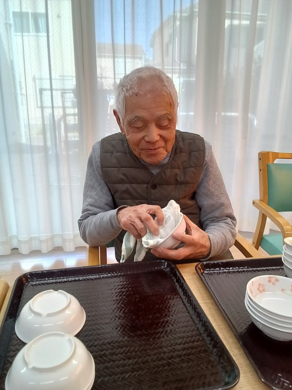 食後のひととき、こころよく食器拭きをお手伝いして下さったお父様(*^_^*)