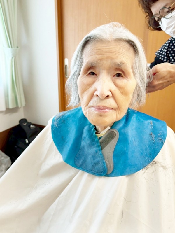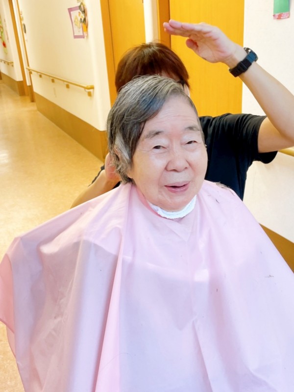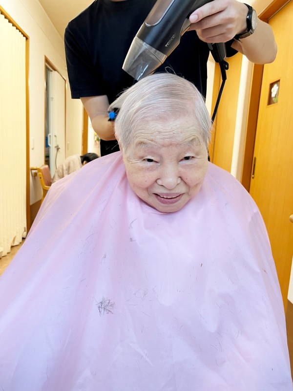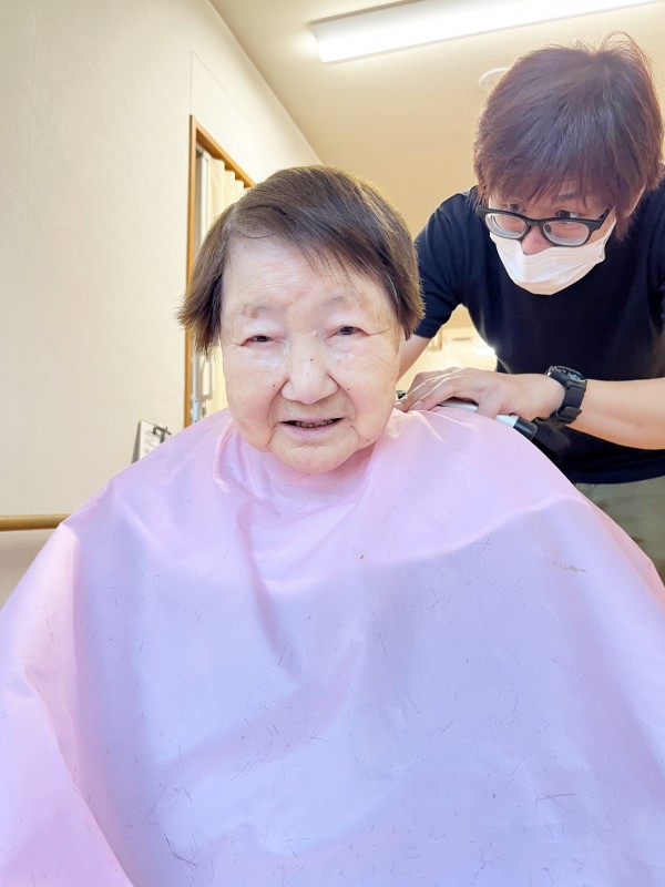 グループホームみんなの家・大宮三橋 髪を整えて、笑顔もアップ♪訪問理美容の様子