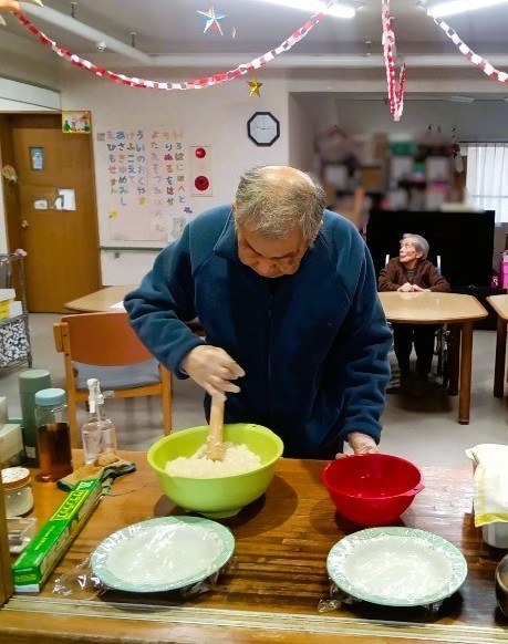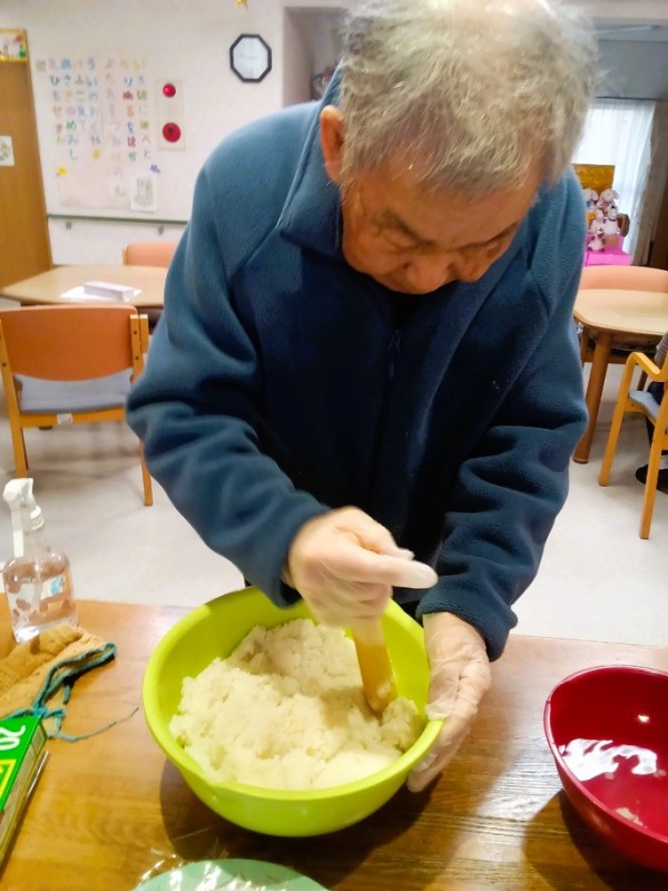 ご入居者様にお手伝いをしていただききな粉とあんこの2種類を!!