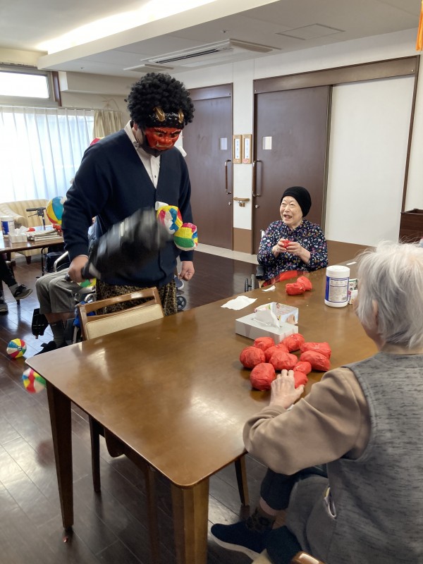 前のブログで見ていただいたように、今回は鬼の体に紙風船をつけてみました!