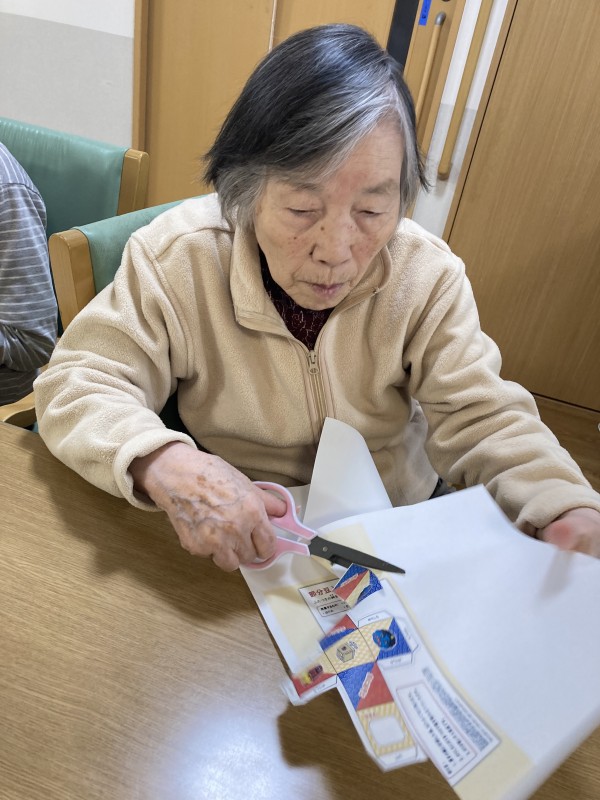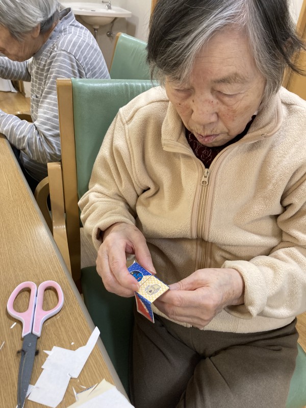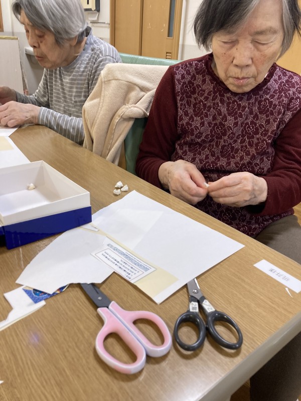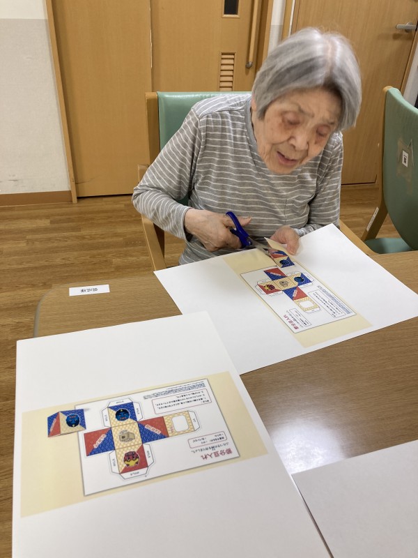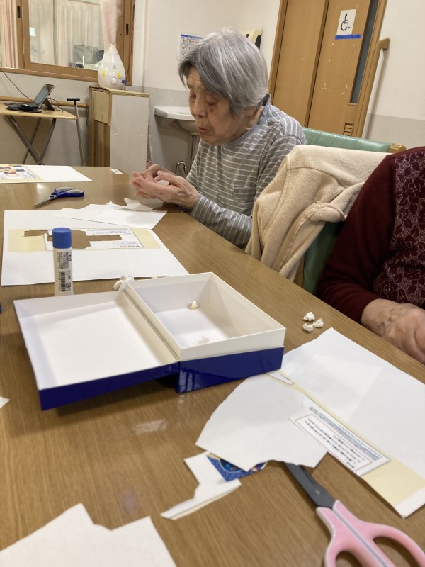 もうすぐ節分ということなので、豆を入れる升作りを行ないました。