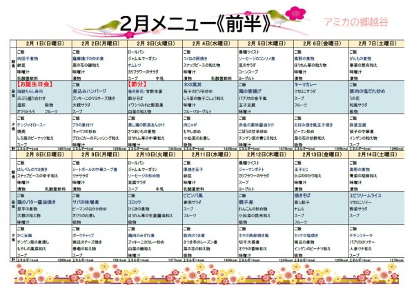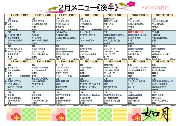2月の献立表