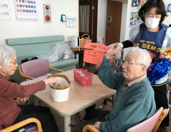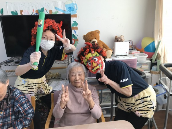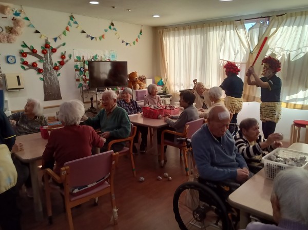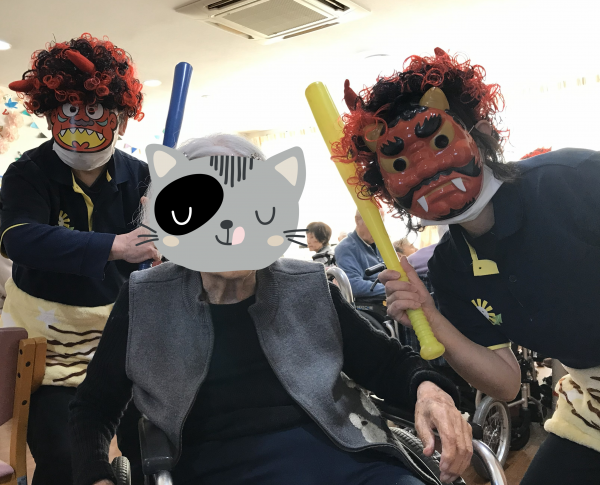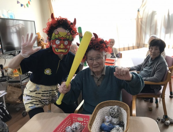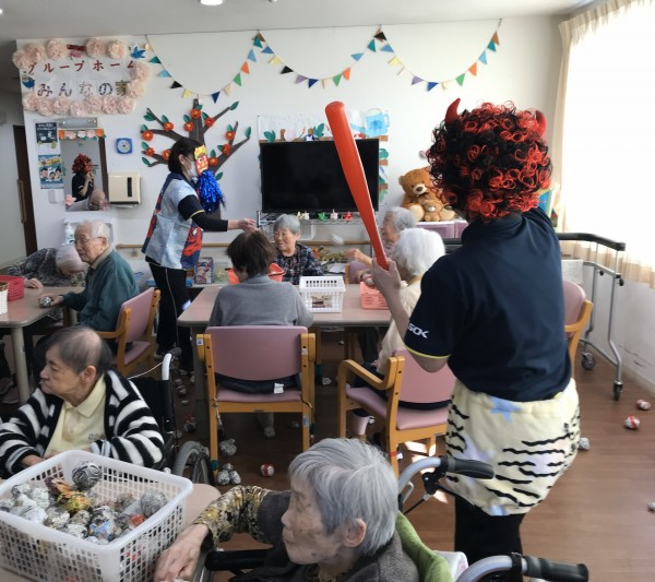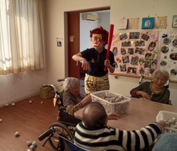 小机でも「鬼は外♬」「福は内♬」と元気にご利用者様達が職員鬼にボールを投げて退治しました(^O^)
