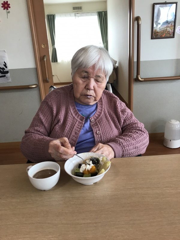 皆様同じものを召し上がれるようにムース、ゼリー、フルーツにしてみました(*^^*)