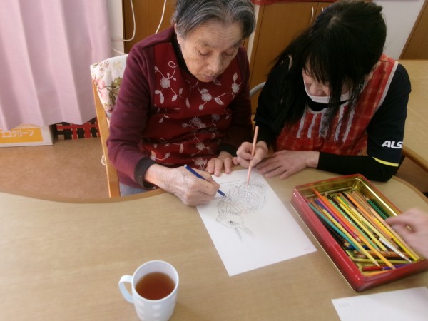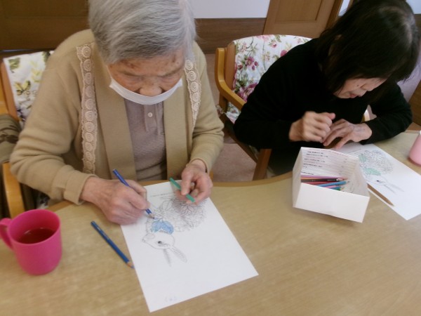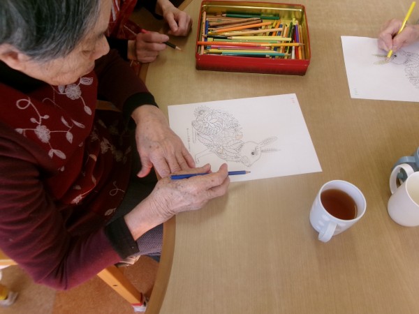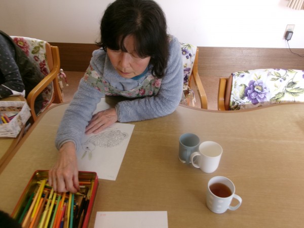 塗り絵を始めると、皆さま夢中に、楽しそうに