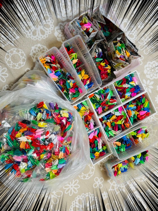 まだまだ途中です。千羽鶴どころか二千羽鶴になりそうです (笑)