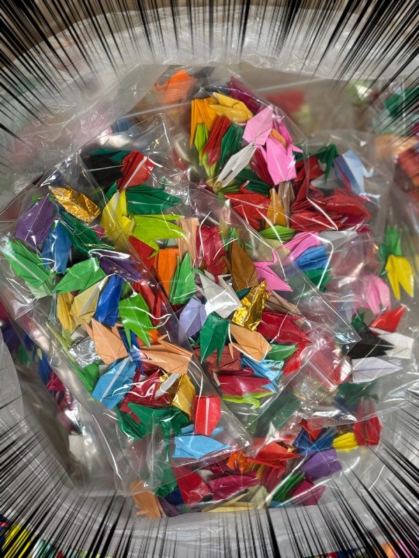 あまりの多さに職員から「もう鶴を折るのは止めて~」と悲鳴があがりました (笑)