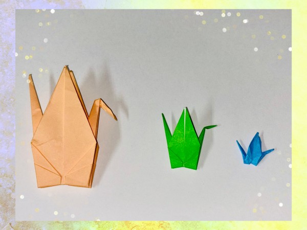 最初は15㎝四方の折り紙を折っていましたが、いつの間にか4分の1サイズの折り紙を使って、折って!折って!折りまくって~!