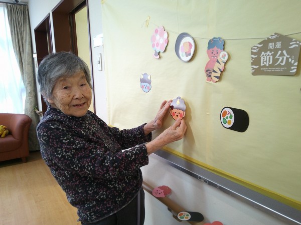 「どの辺に貼ったらいいかな??」「この鬼のお顔とっても可愛いわね♪♪」と楽しそうに作成して下さっています(*'ω'*)