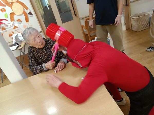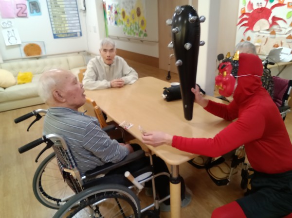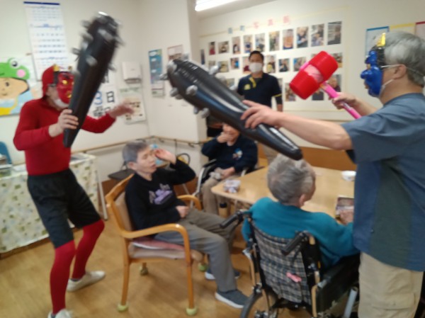 徐々にこん棒やピコピコハンマーを使い鬼退治を始めるご入居者様たち(笑)