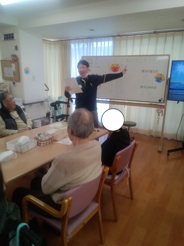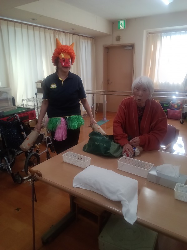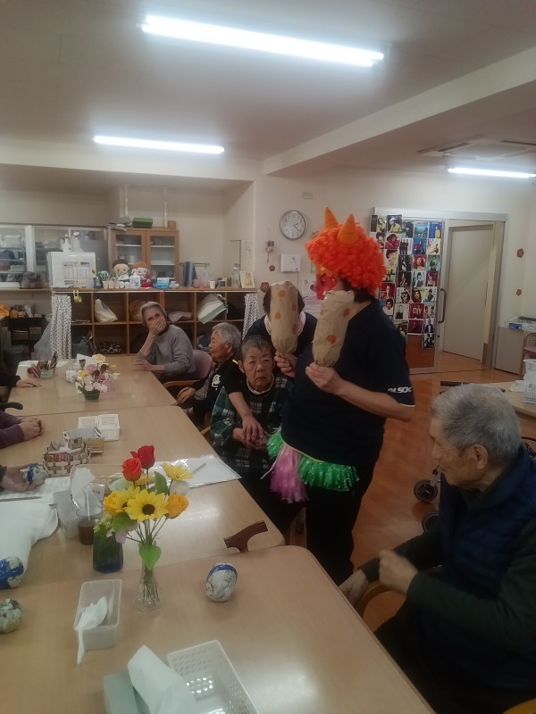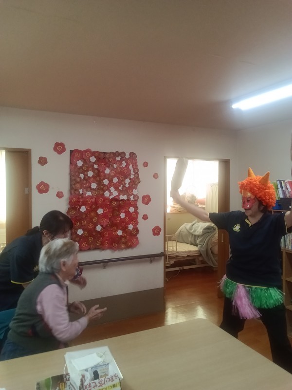 クイズをしていると鬼が登場してきました。