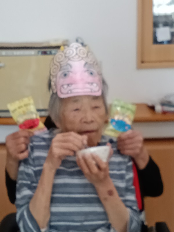 今年は男性職員が沢山出勤していましたので、男性職員さんに鬼をやって頂きました