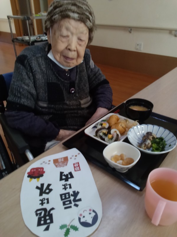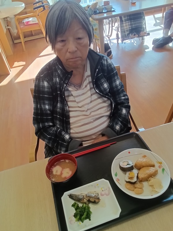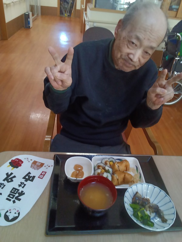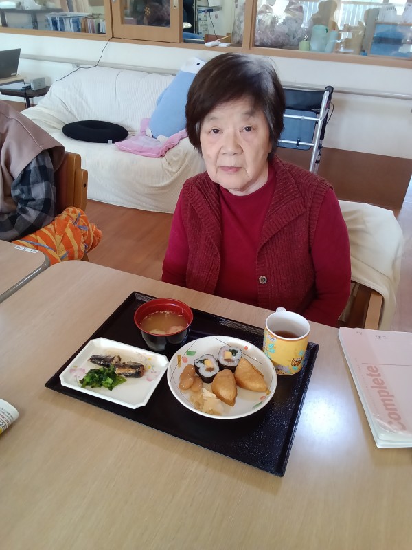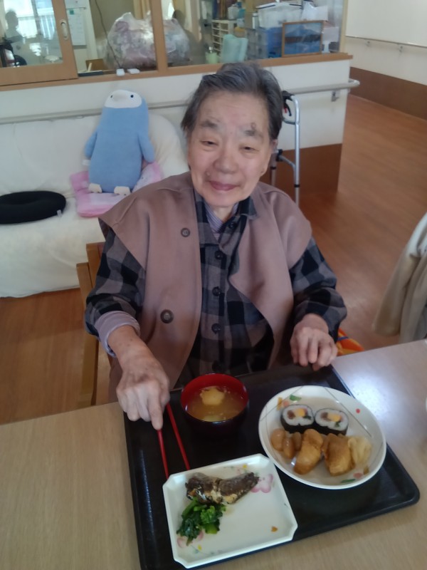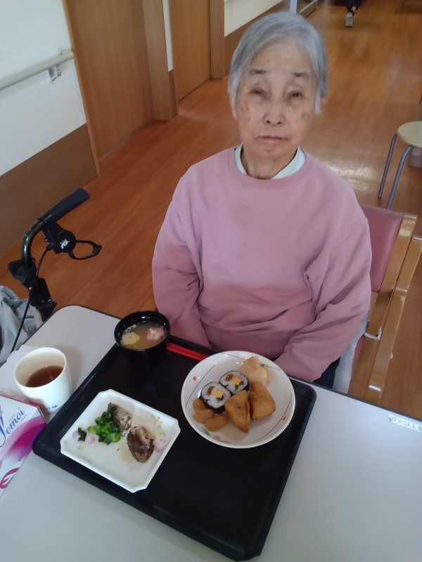 お昼ご飯は恵方巻ではありませんでしたが海苔巻きと、いなり寿司が出ました(^^)