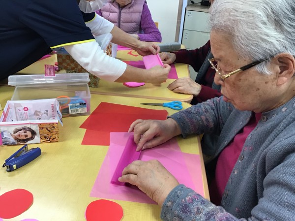 「できた出来た!!!遠くから見たら、ほんとに椿だわ」