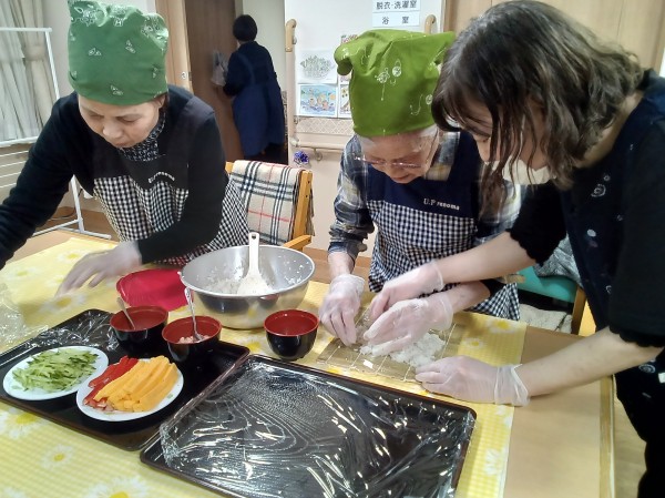 ご入居者様と太巻き寿司を作りました❣