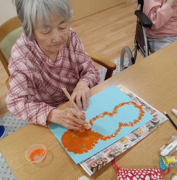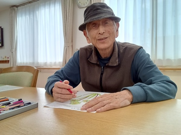 華やかな女性陣の横で、日課の塗り絵をされています。