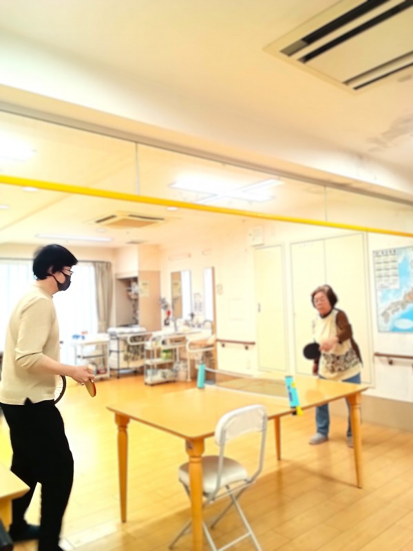 御利用者様のA様は若い頃に卓球経験者でマイラケット持参('◇')ゞ