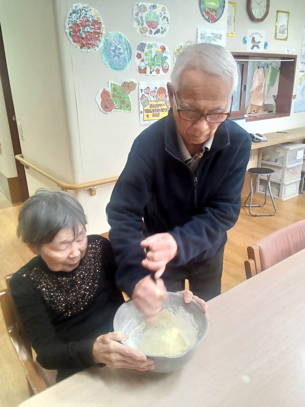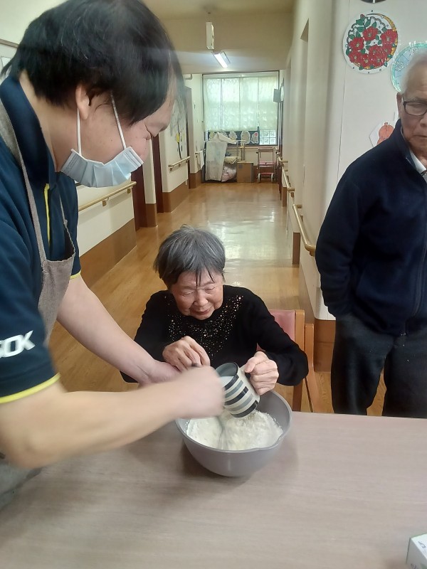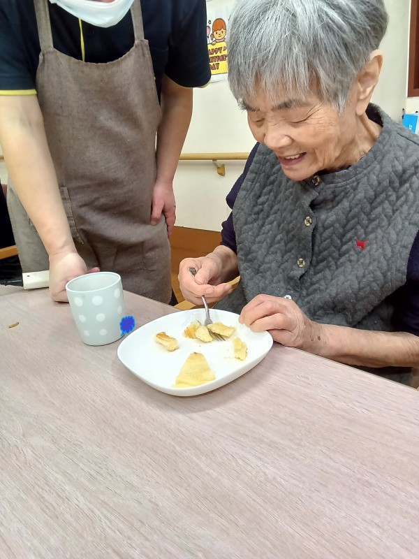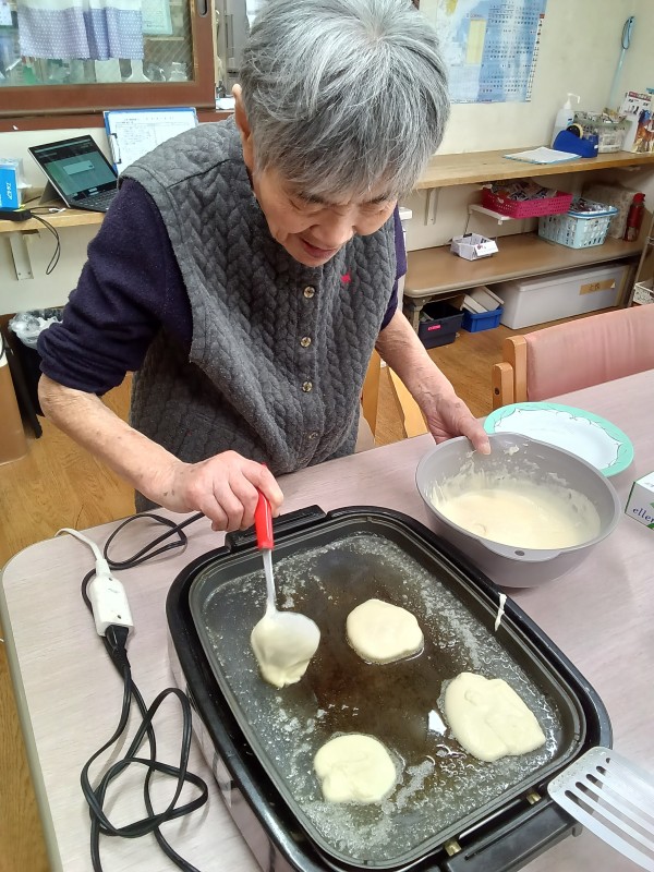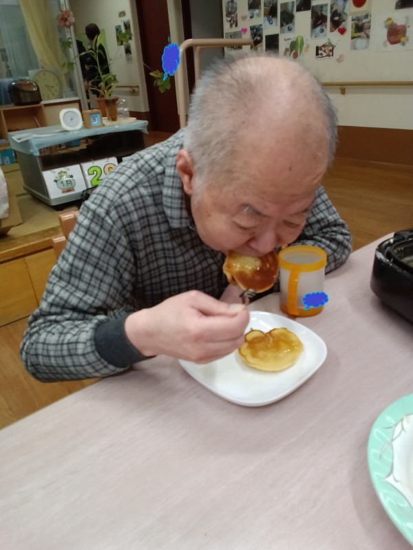 1階ご利用者様、おやつのホットケーキ作りをされました。