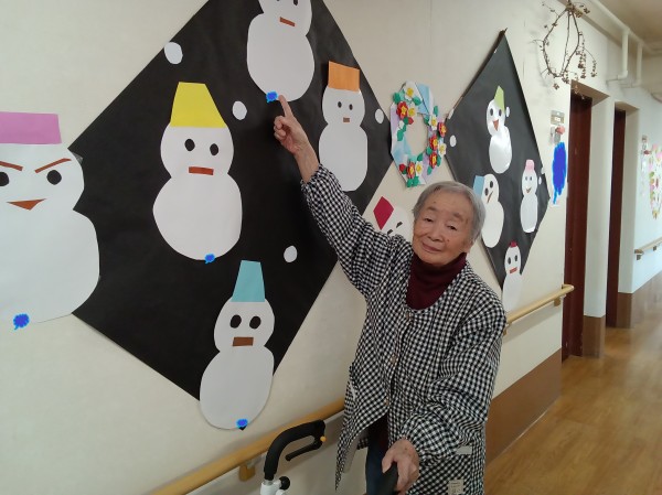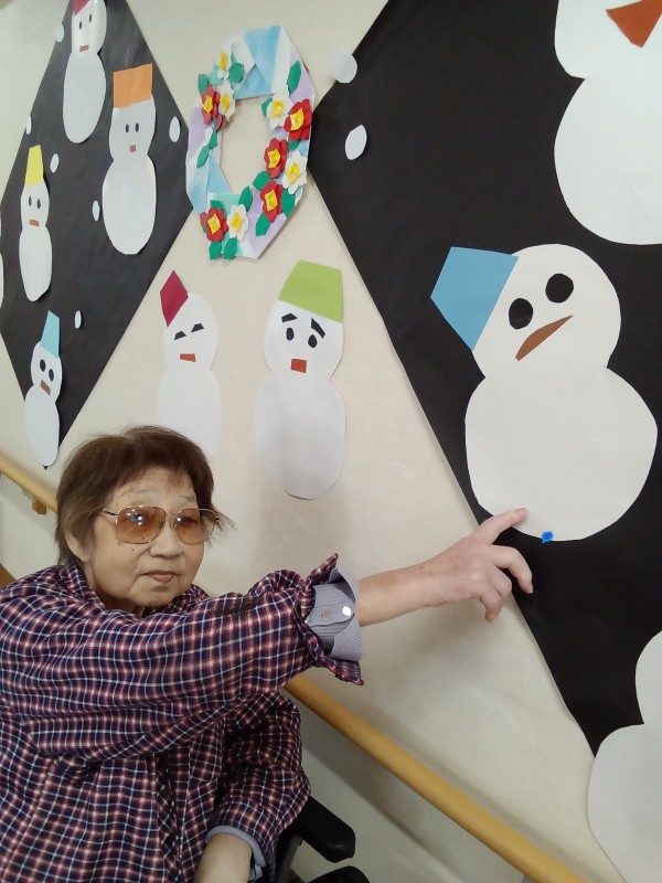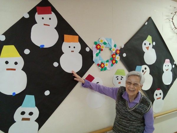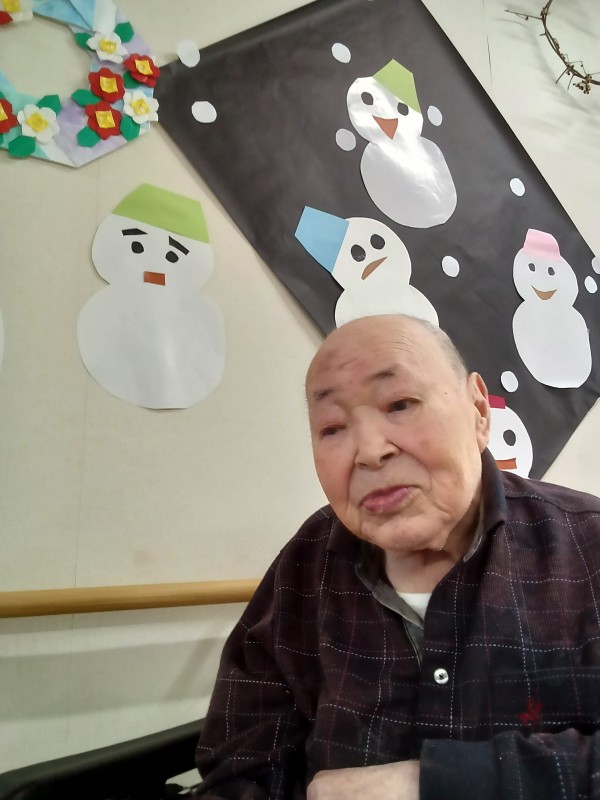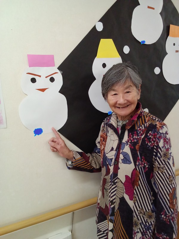 2階ご利用者様に雪だるま製作をしていただきました。